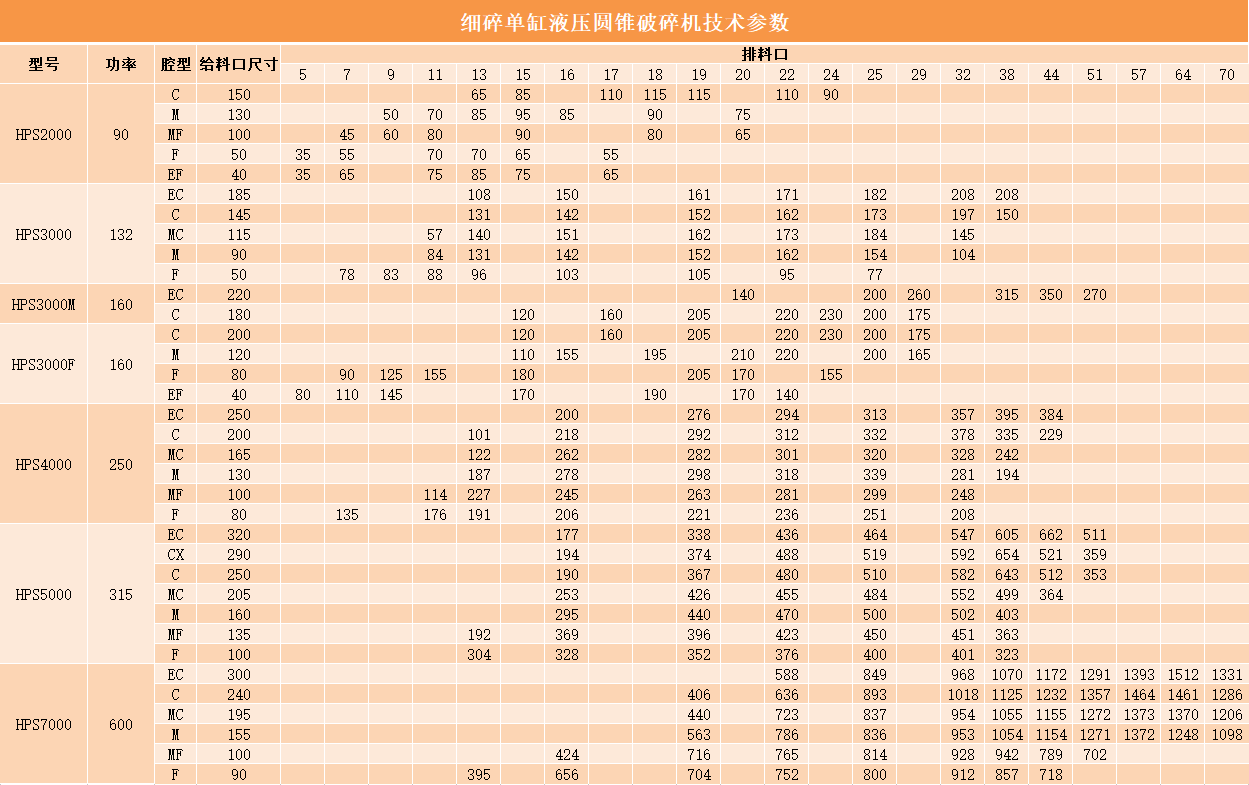 HPS系列單缸液壓圓錐破碎機具有10余種破碎腔型變化及多種可供選擇的偏心距,使設備的靈活性和適應性大大增強。同時同一臺大型圓錐破碎機如果能夠正確的選擇或更換破碎腔型或偏心距,那么通過調整還可使其用于生產過程中的第二段、第三段或第四段等不同階段的破碎,以對不同粒級產品的要求。該系列破碎設備還具有沖程可調節功能,使其可以輕松地對破碎機物料的通過量進行調整,實現與生產線上的其他破碎設備協調運轉,更大限度成品粒度改變時達到產量更大化要求,單缸液壓圓錐破碎機的填料和不填料的襯板安裝方式,可以根據用戶需求靈活選擇