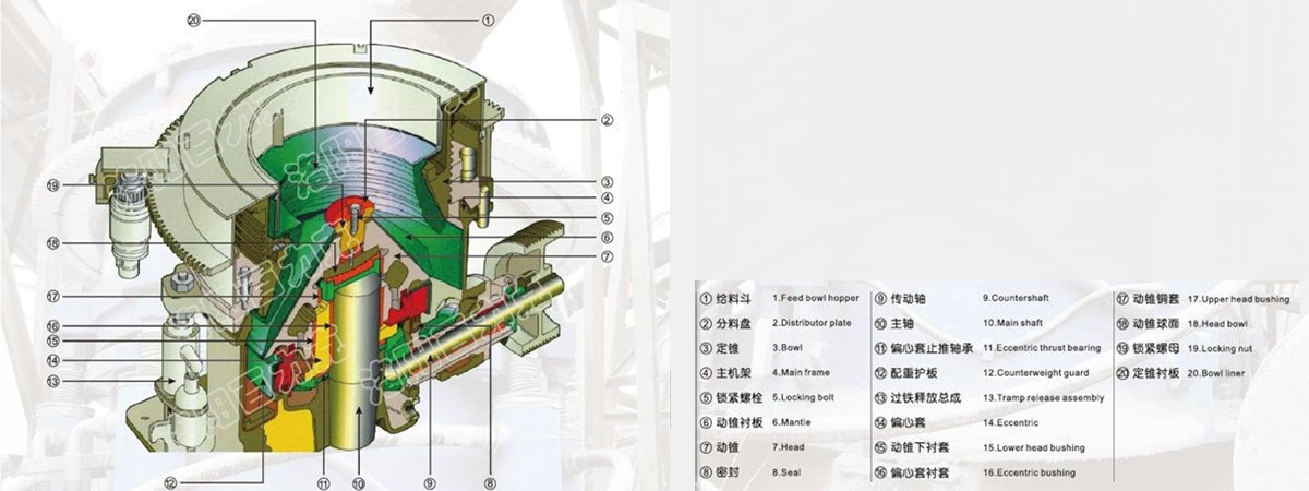 液壓圓錐破碎機采用了與上代液壓圓錐破完全不同的主軸結(jié)構(gòu):定軸超大直徑主軸;高鉛青銅合金軸承;可調(diào)大沖程偏心套。